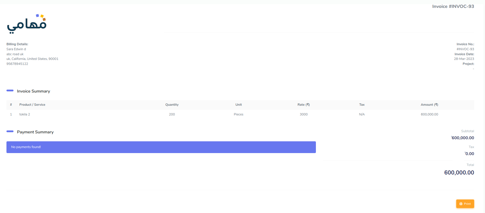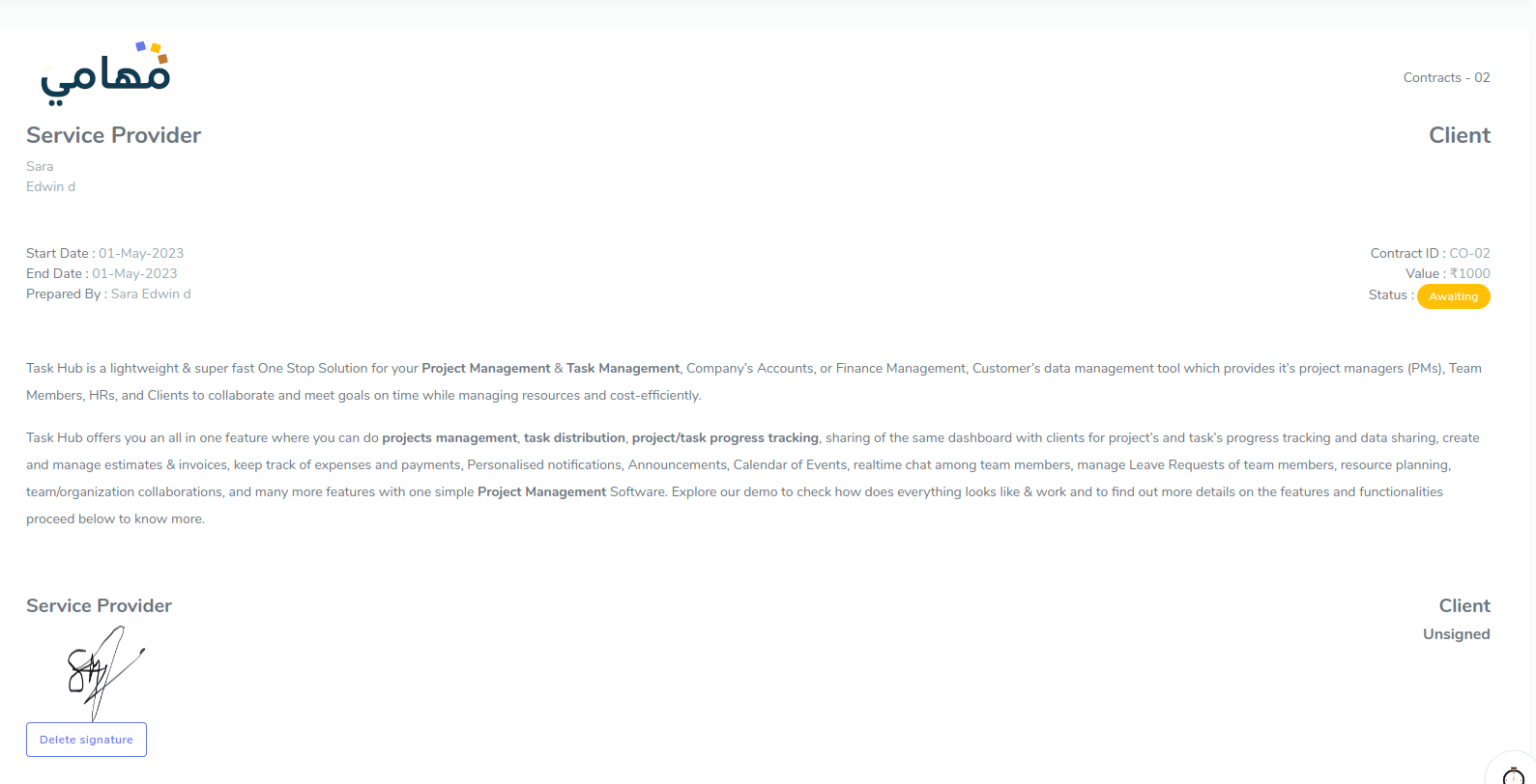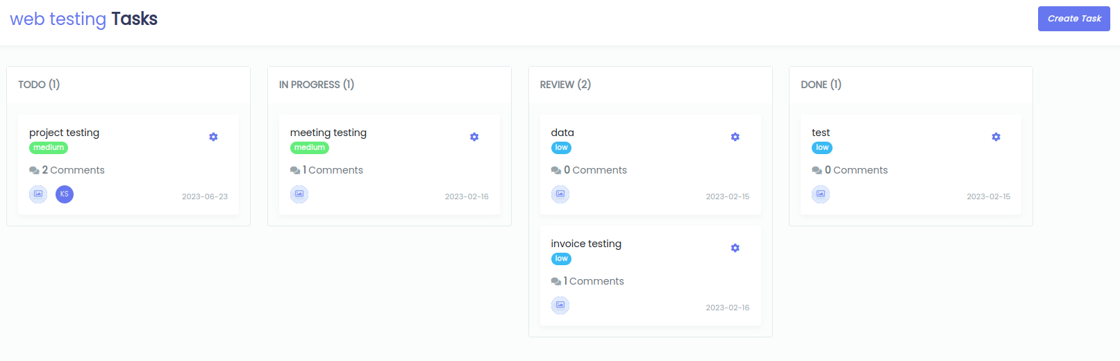 It provides basic information about task also you can filter tasks by project, status, due date, clients and users. you can see detailed information of particular task by clicking view button.