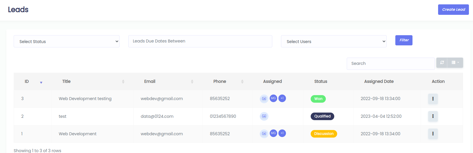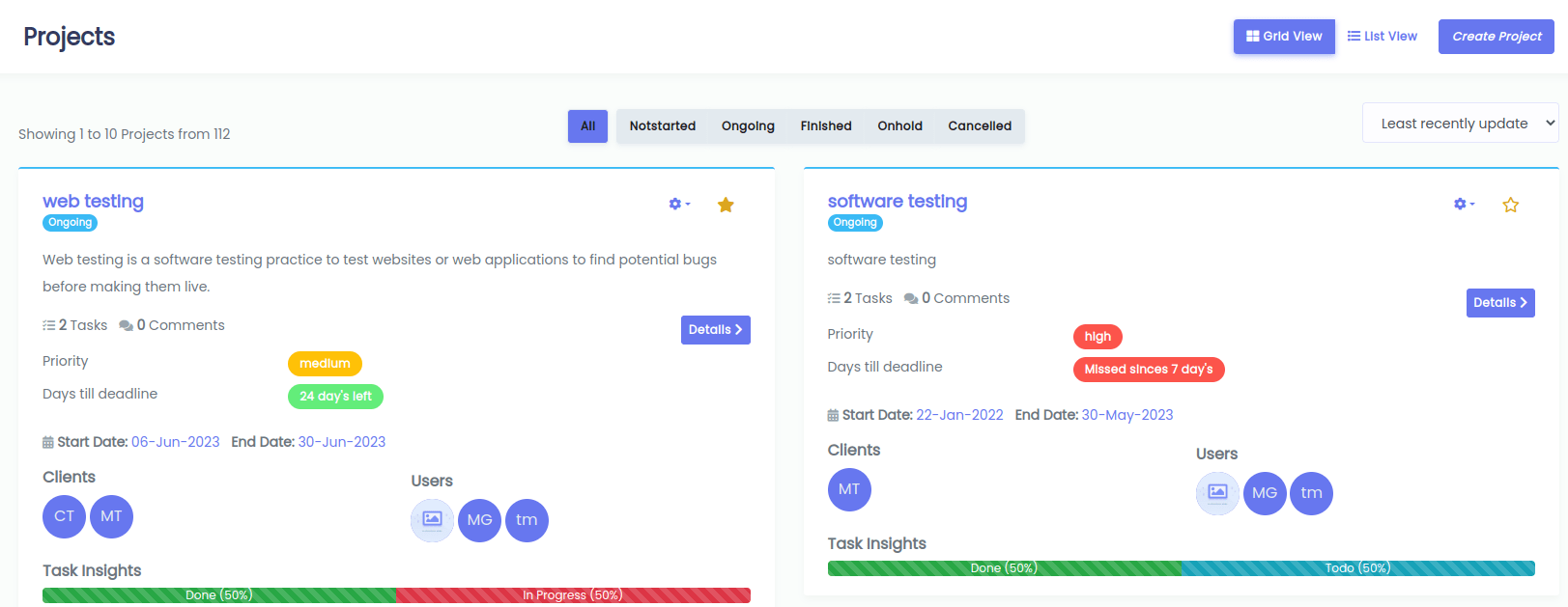 Here you can see all the projects in grid view, list view and calendar view. also projects can be filtered according to it's status and you can manage projects from here.